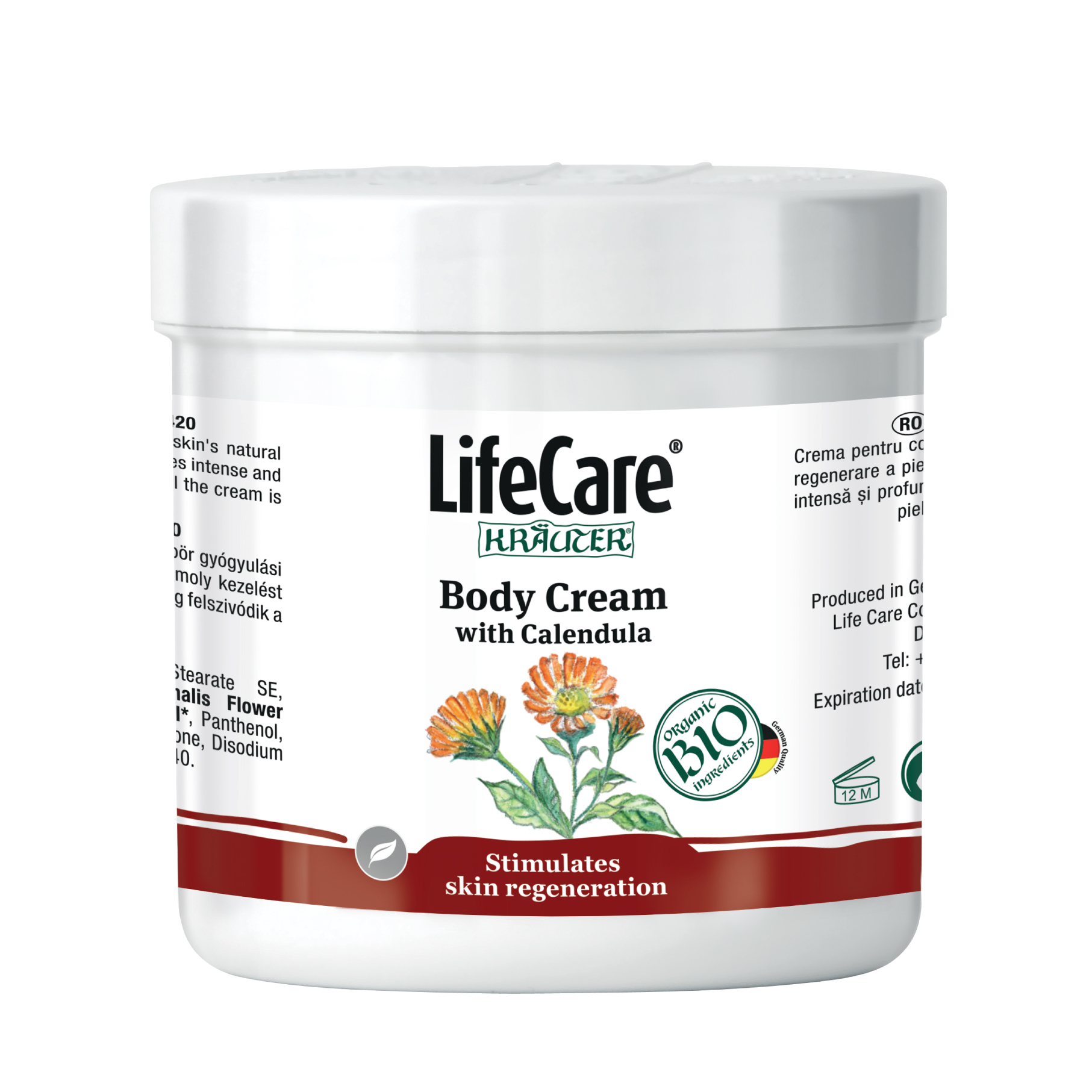 Crema de corp, cu galbenele BIO, Life Care® este ideala pentru ingrijirea pielii sensibile, uscate si obosite avand proprietati de calmarea si regenerare.