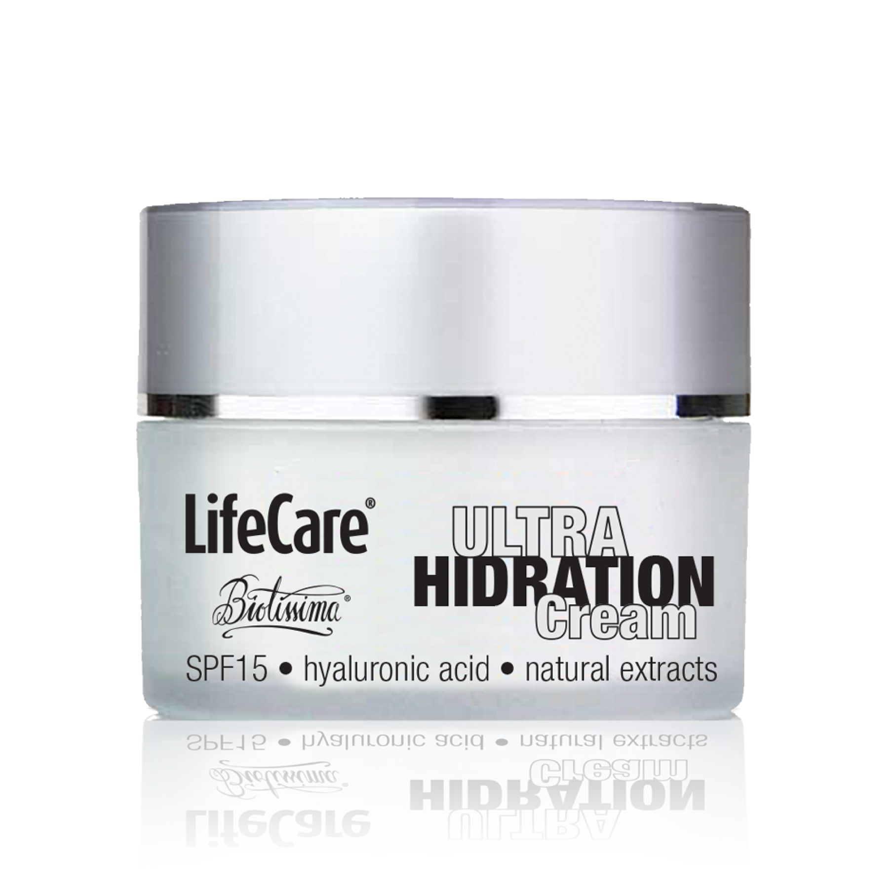 Crema ULTRA hidratanta, cu SPF 15 si acid hialuronic, Life Care® contine un mix de 7 extracte naturale precum: magnolie, musetel, scoarta de salcie, ceai verde, tuia, grapefruit si propolis, cu un puternic efect antioxidant si de hidratare, ideal pentru pielea sensibila.