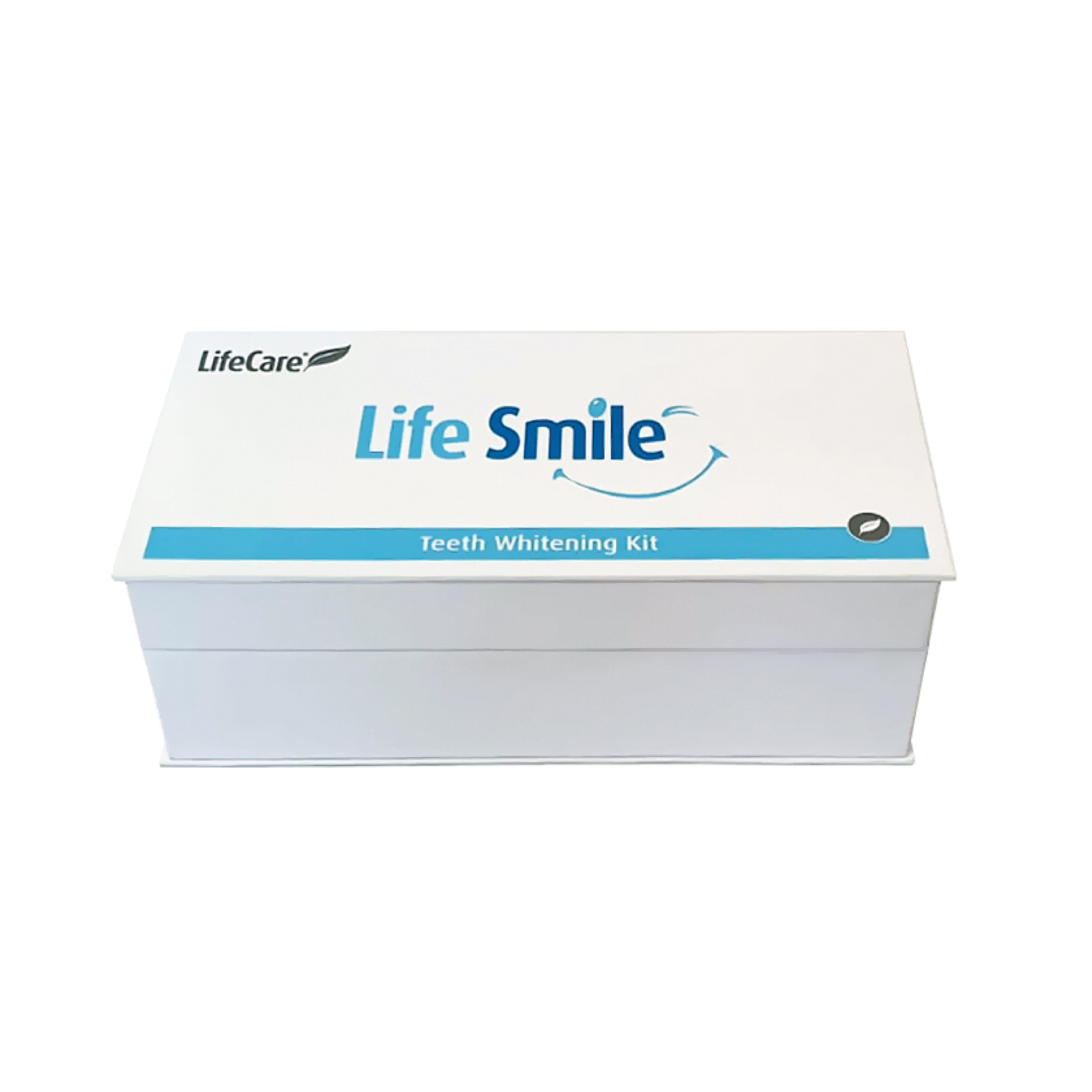 Kit pentru albirea dintilor, Life Smile adopta o tehnologie speciala de lumina rece de inalta intensitate de tip Blue Ray ce reactioneaza cu gelul de albire a dintilor. Acesta contine o formula pe baza de bicarbonat de sodiu, dar si alte ingrediente naturale precum: Aloe Vera, Matricaria, ulei din samburi de rodie si extracte naturale ca mentol, Limonene, Pinene, β-Pinenes.