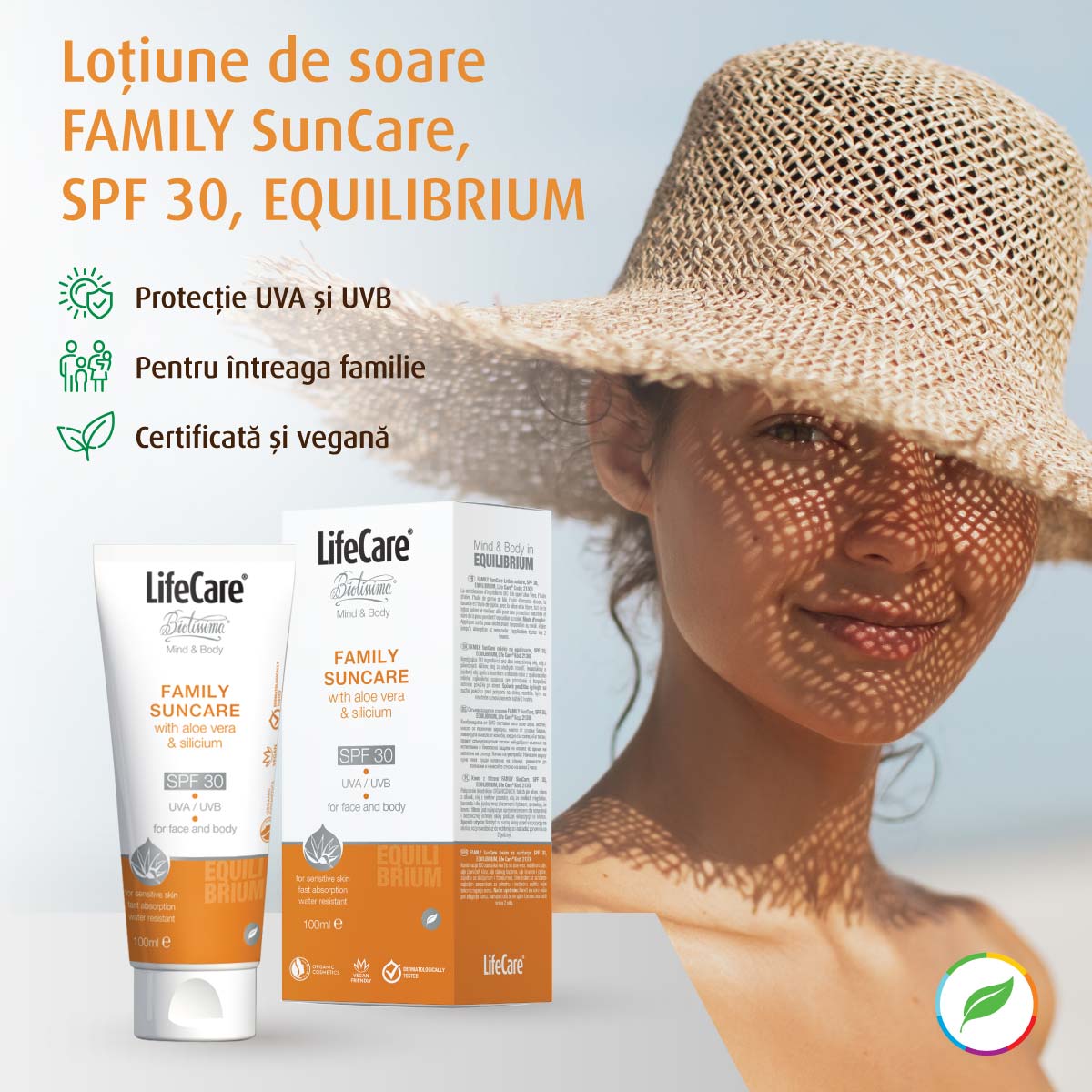 Lotiune de soare FAMILY SunCare, SPF 30, EQUILIBRIUM, Life Care® - descoperiti secretul unei pieli sanatoase si protejate, indiferent de varsta sau sezon!