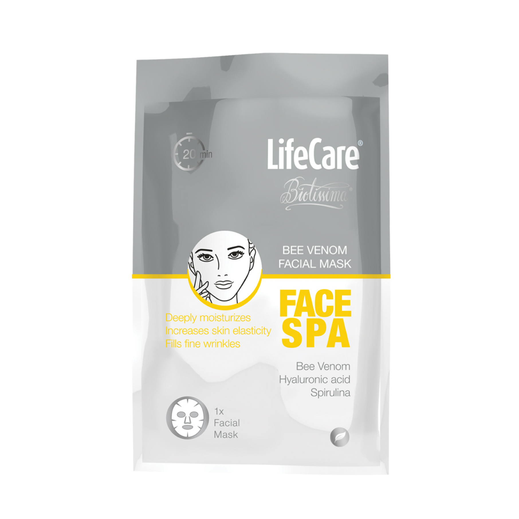 Masca faciala, FACE SPA, cu venin de albine, Life Care® hidrateaza in profunzime tenul, lasand-ul improspatat si mai luminos in doar 20 de minute.