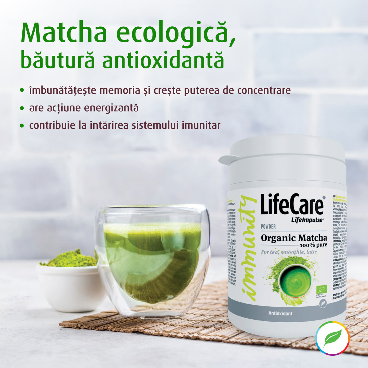 Frunzele din care se obtine matcha sunt extrem de bogate in clorofila, substanta nutritiva care le da plantelor culoarea verde. Clorofila are proprietati antioxidante, antianemice, antiinflamatorii. In plus, ajuta la vindecarea ranilor, mentinerea echilibrului hormonal, detoxifierea organismului si promovarea sanatatii digestive.