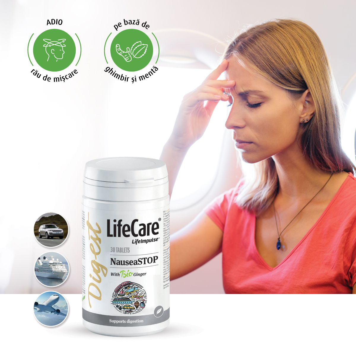 Solutia? NauseaSTOP, pastile pentru miscare libera Life Care®, benefic pentru echilibrul sistemului digestiv.