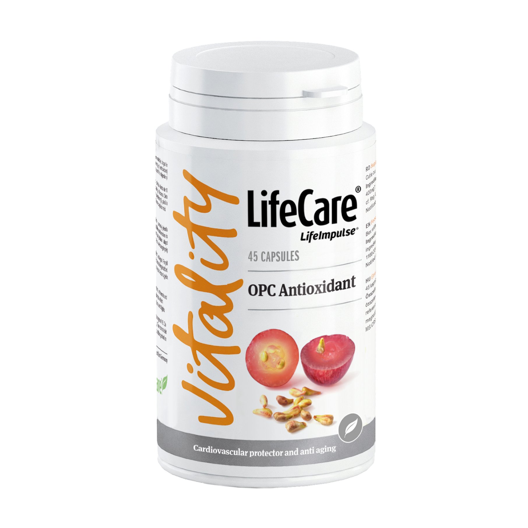 OPC Antioxidant, cu extract din samburi de struguri, Life Care® protejeaza celulele organismului impotriva radicalilor liberi, care duc la oxidarea rapida a acestora.