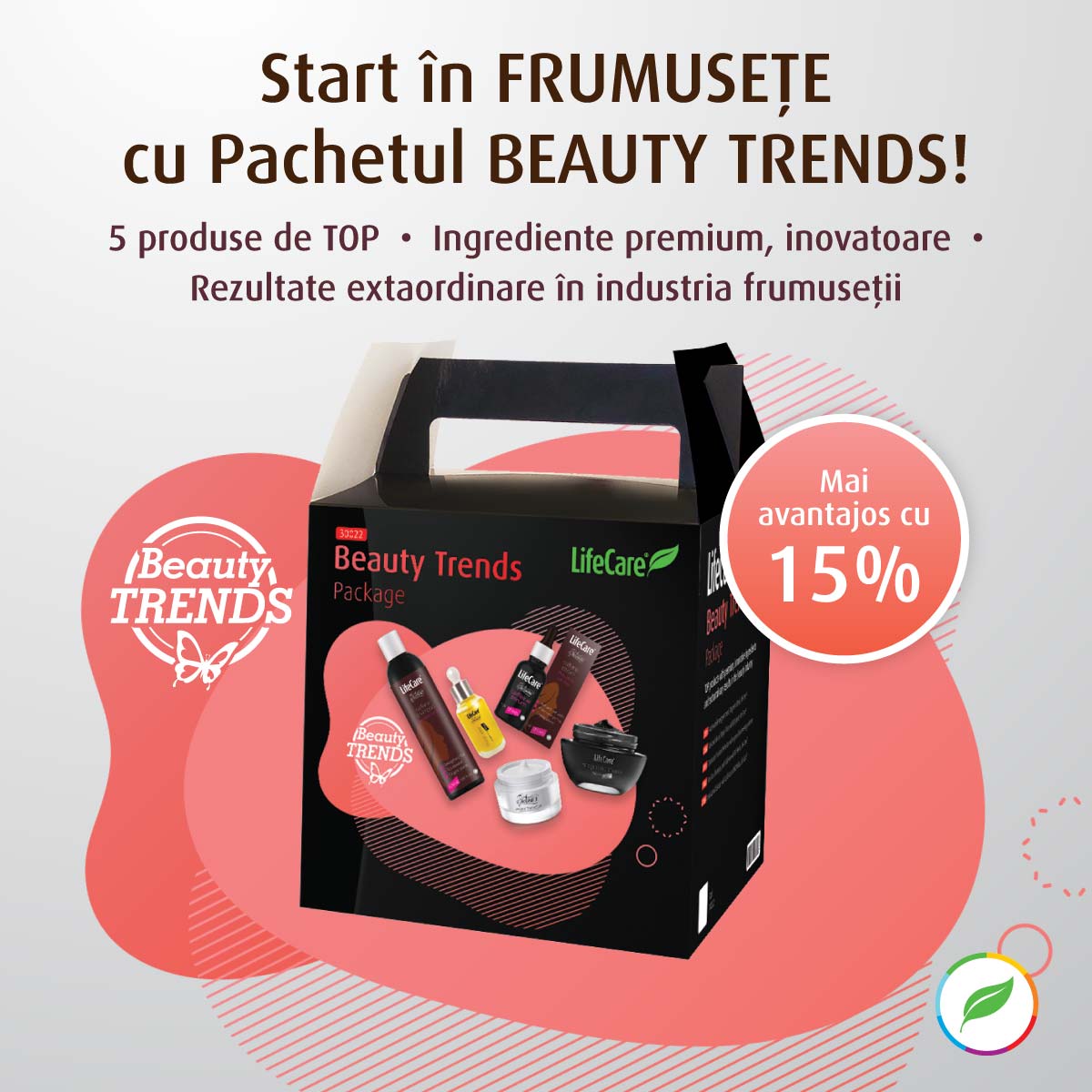 Pachetul „BEAUTY TRENDS” reprezinta o colectie exclusiva care aduce in prim-plan produse de frumusete formulate cu ingrediente premium si inovatoare, cu rezultate extraordinare in industria frumusetii.