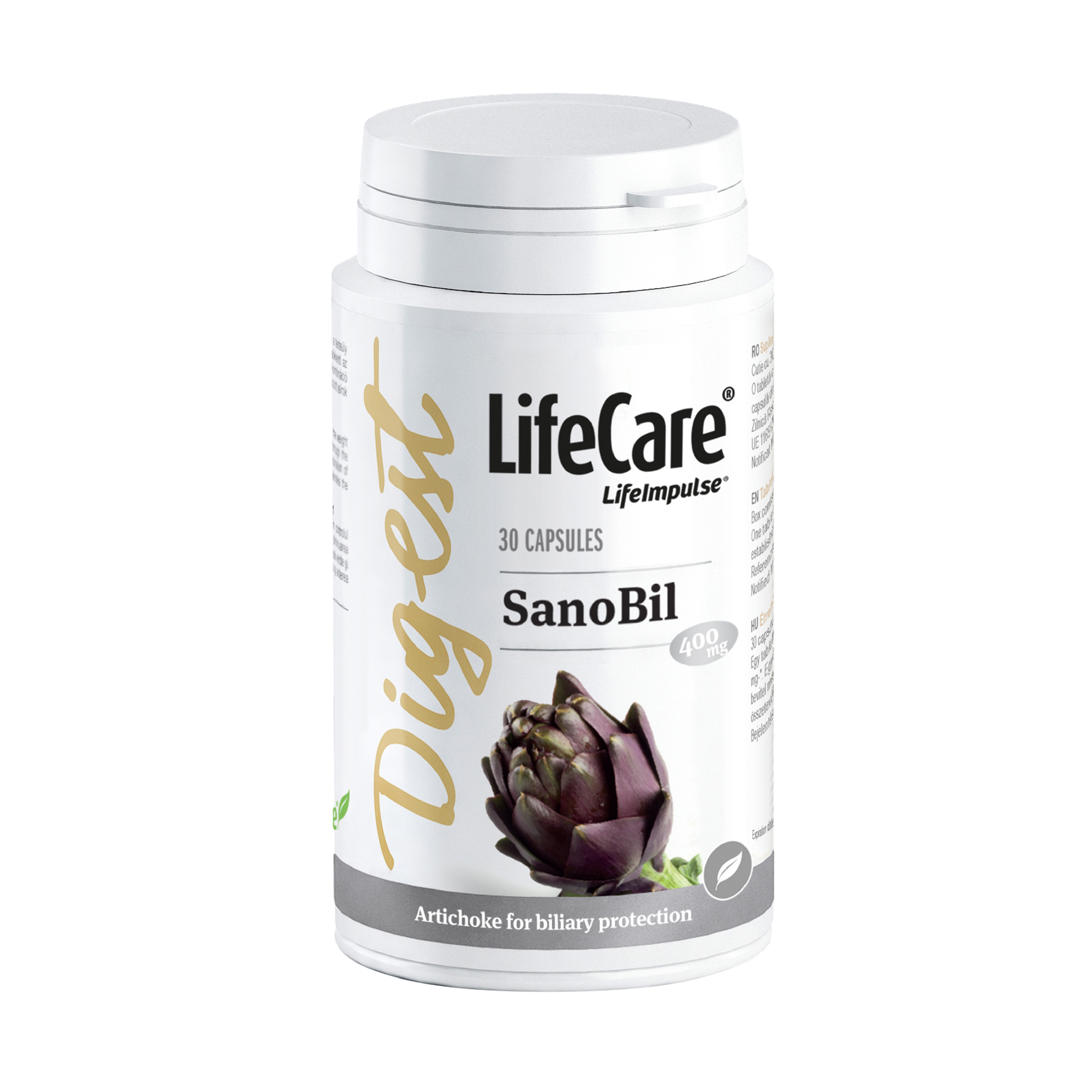 Sanobil, cu anghinare, Life Care® stimuleaza producerea bilei. Mentine normal nivelul trigliceridelor si al colesterolul. Accelereaza tranzitul intestinal. Suplimentul alimentar cu anghinare poate fi suport in blocajele de functionare ale colecistului.