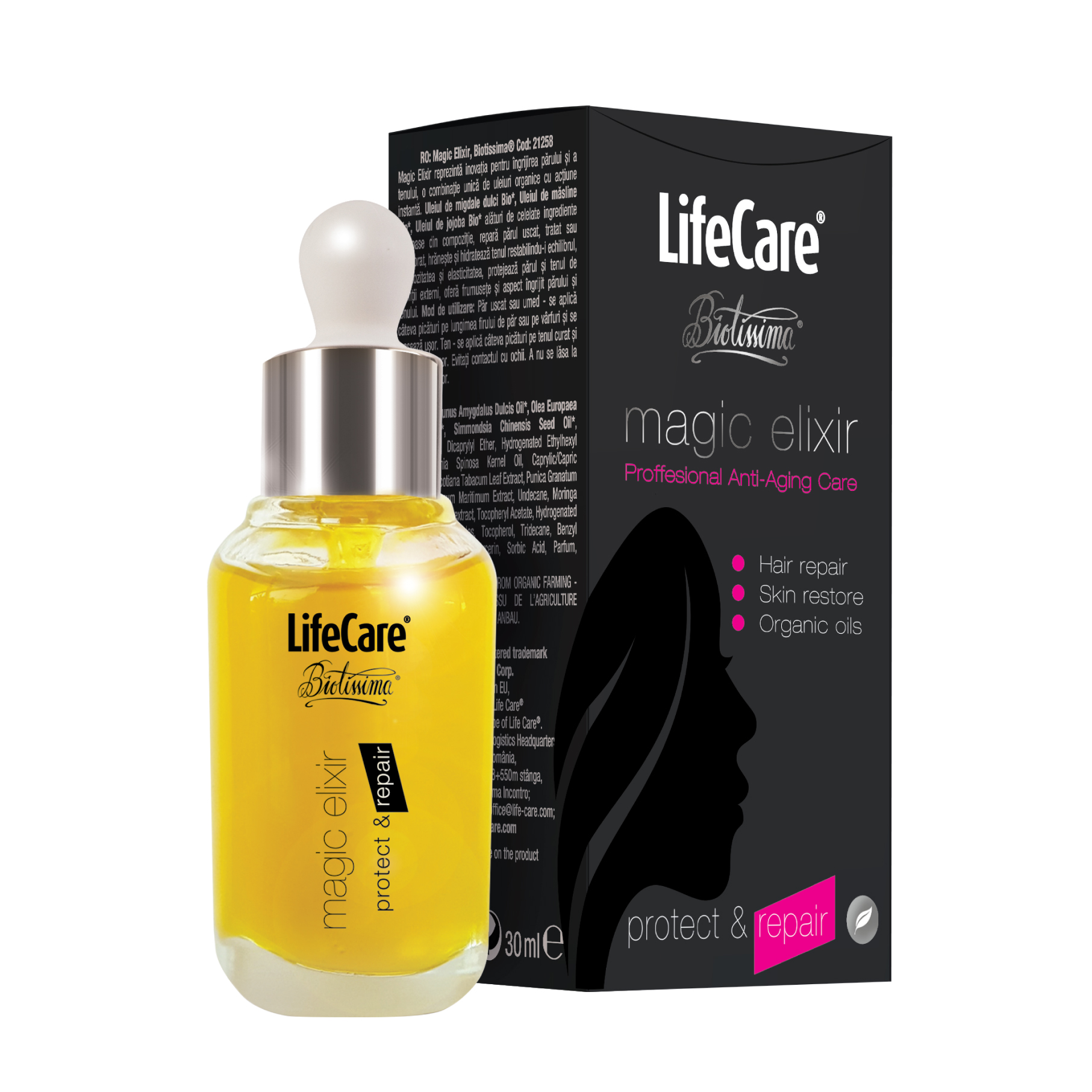 Ulei pentru par si piele, Magic Elixir, cu plante BIO, Life Care® este cu adevarat magic - cu textura sa usoara si fina ca o matase are o actiune instanta de protejare si reparare. Magic Elixir este ideal atat pentru par si fata - o singura picatura este suficienta pentru a va trezi simturile olfactive si tactile.
